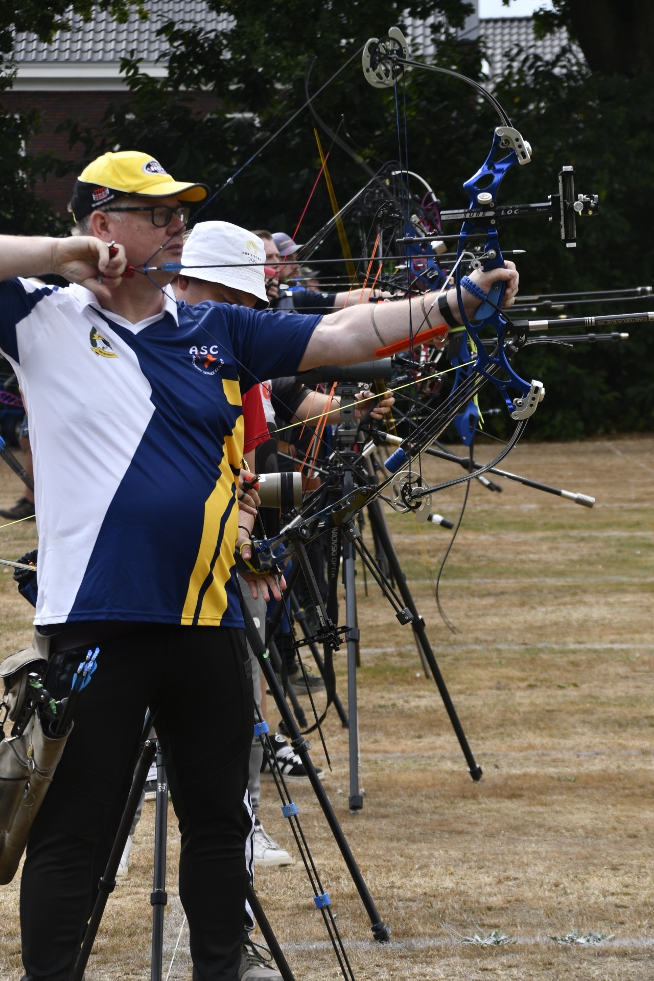 Een mooi weekend vol herinneringen en prettig weer om in te schieten. Een gezellige bbq op de zaterdagavond en met als kers op de taart, op zondag kwam de boog van Erwin weer in actie. Dit keer in de handen van zijn goeie vriend Peter van der Wijst (Stekel).